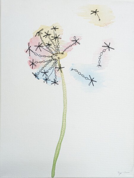This piece depicts a dandelion where the tufts are neurons. The number of neurons (and brain cells in general) that we get in life is limited. This is a commentary on the beautiful fragility that exists in life. Our time on earth is limited, and we need to make the best of it. The goal isn’t to keep the flower together, but to spread the seeds in meaningful ways. Our neurons will die anyway, so we need to make the most of our fleeting time.